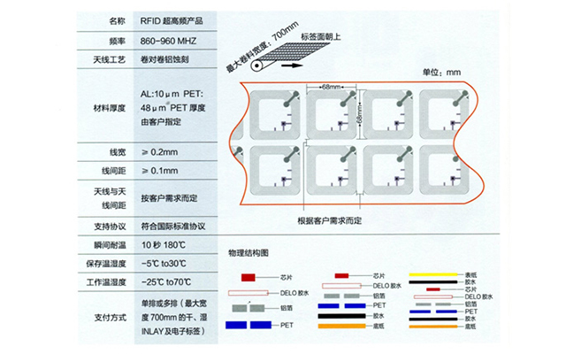 满足国际IS015693、IS018000-6B、EPC G2等多种标准,采用不同的天线设计和封装材料可制成多种形式的标签,如车辆标签、货盘标签、物流标签、金属标签、图书标签、液体标签、人员门禁标签、门票标签、行李标签等。